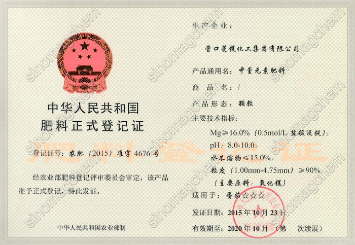 肥料登记证(颗粒)